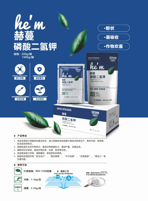 Herban Potassium Dihydrogen Phosphate: A classic foliar fertilizer with fine powder that dissolves instantly in water, promoting flowering and fruit retention while delivering outstanding effects in improving quality and increasing yield.